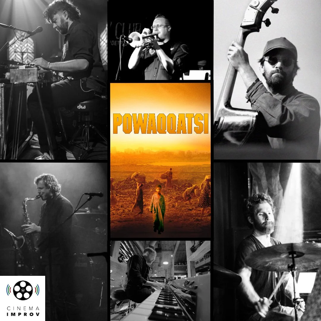 This lovely episode features Mike Robinson (Sierra Ferrell, Maggie Rogers) on pedal steel, Jon Thompson on saxophones, Jesse Neuman on trumpet, Damian Calcagne (Pine Box Studio) on keys, Scott Colberg (Calexico, Margaret Glaspy) on bass and host Dave Butler (Guster) on drums improvising to Godfrey Reggio’s beautiful and haunting 1988 non-narrative film, Powaqqatsi.